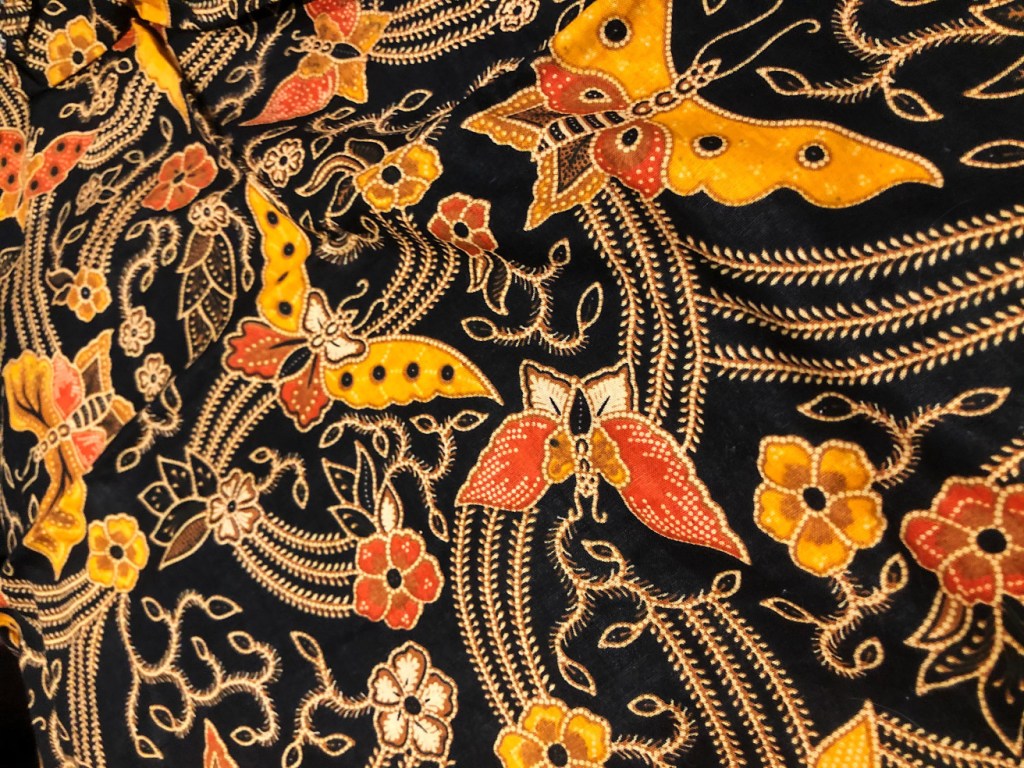 Batik is a pride of Indonesia, in the form of textile art. The process includes using dye-resistant wax (via a ‘canting’) to leave certain areas un-dyed, as they go through the dyeing process. ‘Batik tulis’ is the most expensive kind of batik, as it is hand drawn and have unsurpassed quality. Additionally, there is wax stamps and more contemporary versions of using dye-resistant wax. The dye is also usually imported and synthetic. However, many artisans are going back to traditional methods through making dye from plants.